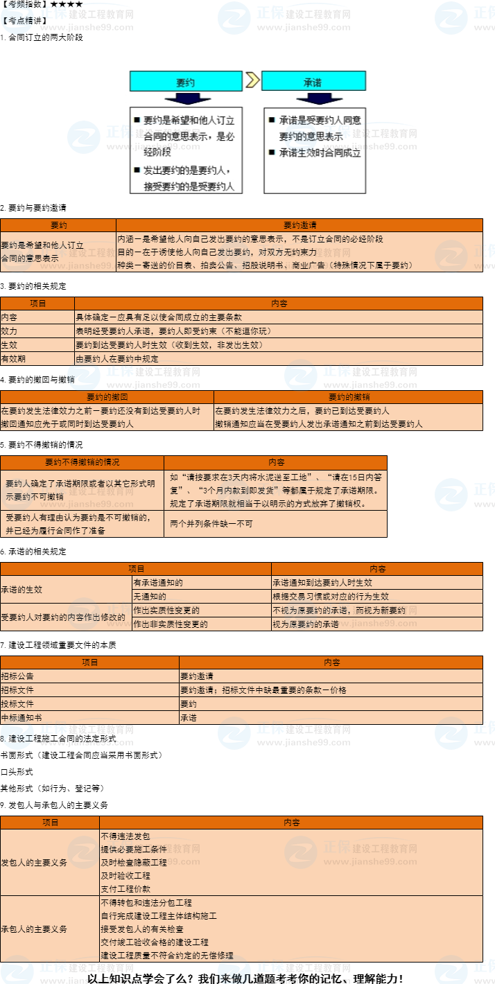 一建工程法規(guī)識(shí)點(diǎn)10:合同的要約與承諾