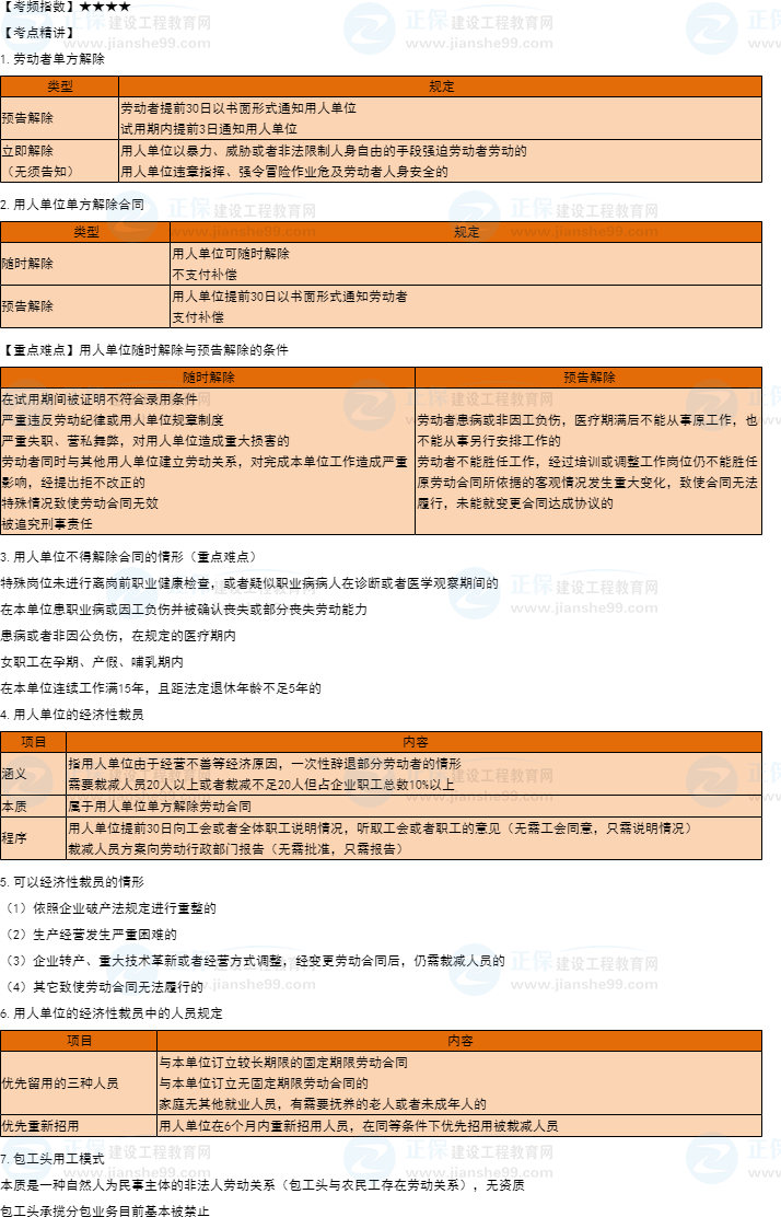 【30天預(yù)習(xí)計(jì)劃】一建工程法規(guī)知識(shí)點(diǎn)15:勞動(dòng)合同的解除和終止