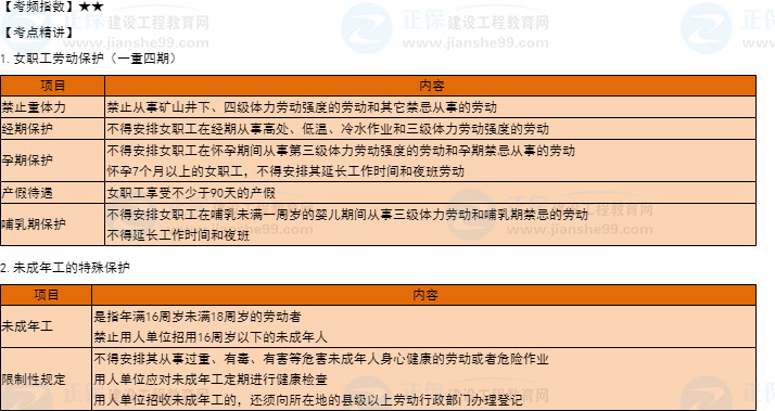 【30天預(yù)習(xí)計(jì)劃】一建工程法規(guī)知識點(diǎn)16:女職工和未成年工的特殊保護(hù)