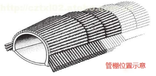 那么管棚的位置是在鋼拱架(格柵拱架)的外側(cè)打入的。