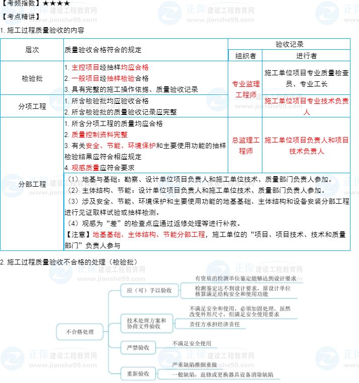 一建項目管理知識點20:施工過程的質(zhì)量驗收