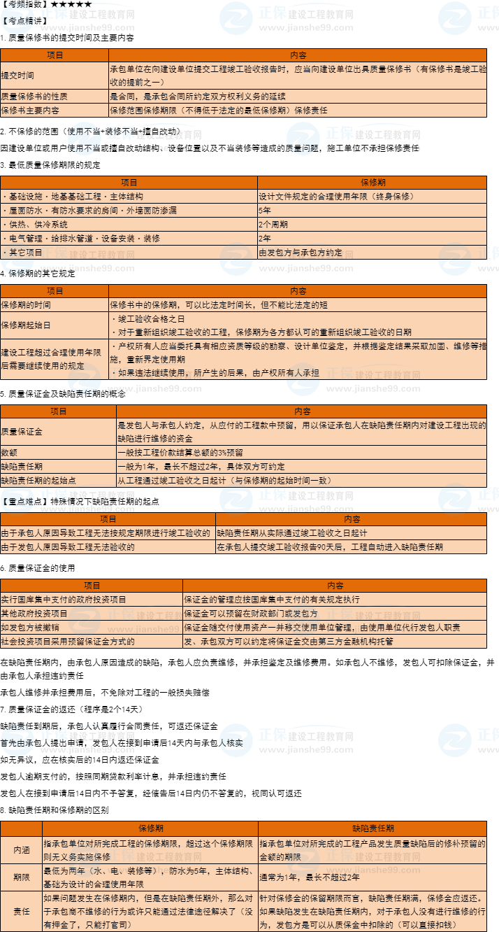 一建工程法規(guī)知識(shí)點(diǎn)26:建設(shè)工程質(zhì)量保修制度