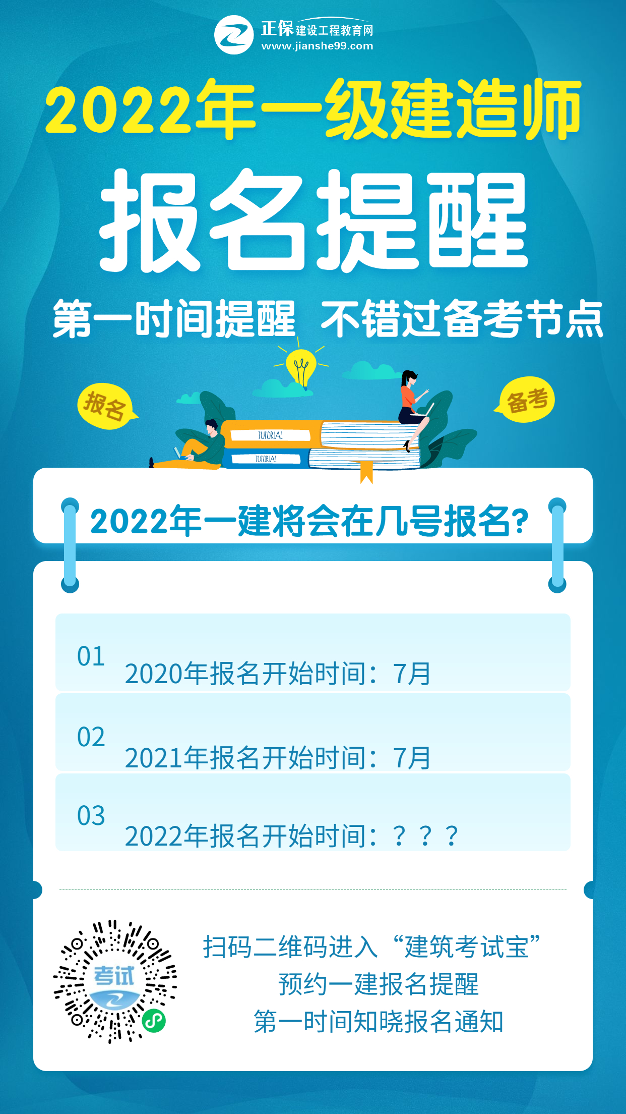 當然!2022年一建考試報名時間還需要等待官網(wǎng)公布,希望小編整理到的內(nèi)容可以幫助到大家,同學們也可以在“建筑考試寶”中預(yù)約報名提醒!