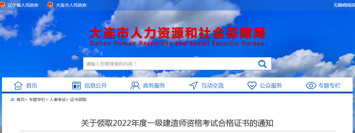 關(guān)于領(lǐng)取2022年度大連一級(jí)建造師資格考試合格證書的通知