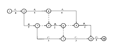 (2)用圖算法進(jìn)行時(shí)間參數(shù)計(jì)算,并標(biāo)出關(guān)鍵線路;