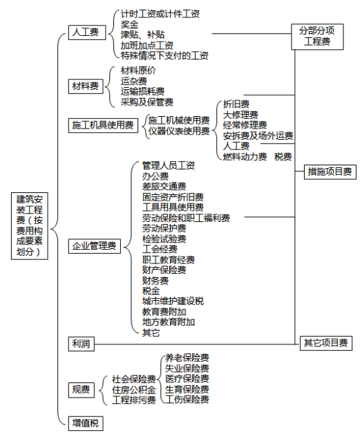 按成本構(gòu)成要素劃分的建筑安裝工程費(fèi)用項(xiàng)目組成