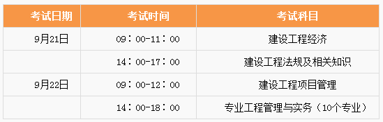 《建設(shè)工程經(jīng)濟(jì)》的考試時間為2小時,《建設(shè)工程項目管理》、《建設(shè)工程法規(guī)及相關(guān)知識》的考試時間為3小時,《專業(yè)工程管理與實務(wù)》的考試時間為4小時??忌仨氃谶B續(xù)的兩個考試年度內(nèi)通過全部科目的考試,方可獲得一級建造師資格證書。本次考試歷時兩天,考試時間安排如下: