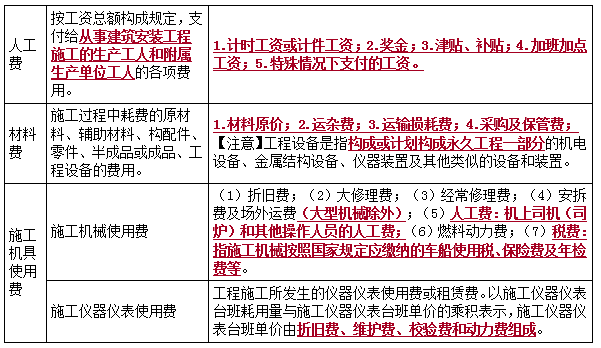 人工費(fèi)、材料費(fèi)及施工機(jī)具使用費(fèi)-一級建造師經(jīng)濟(jì)考點(diǎn)