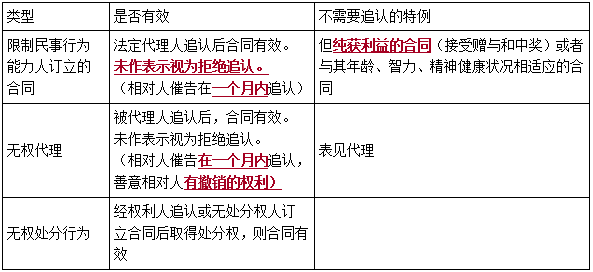 效力待定合同的類型