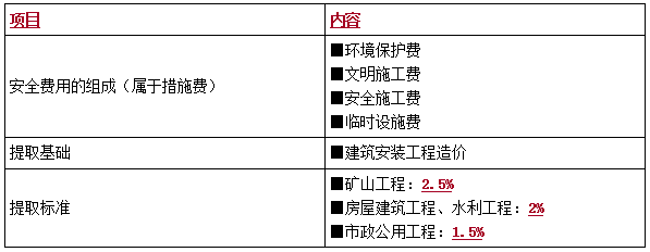 2.安全費(fèi)用組成及提取標(biāo)準(zhǔn)(以下為最低標(biāo)準(zhǔn))