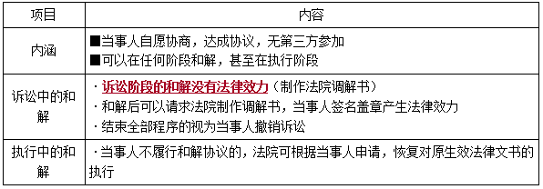■和解協(xié)調(diào)具有法律效力但不具有強(qiáng)制執(zhí)行力(例外:訴訟中和解無(wú)法律效力)