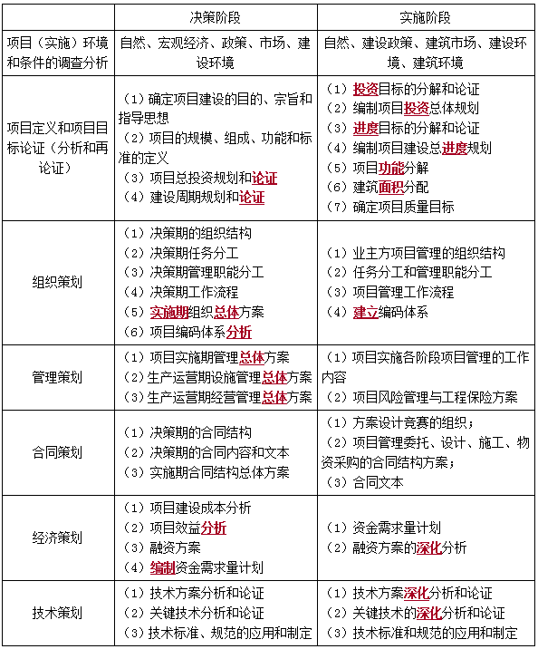 項目決策階段、實施階段策劃的工作內(nèi)容-一級建造師管理考點