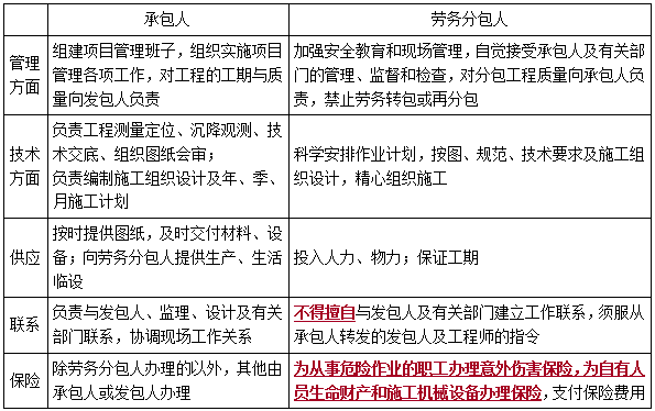 1.承包人和勞務(wù)分包人的主要義務(wù)