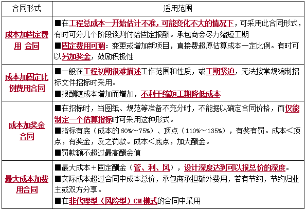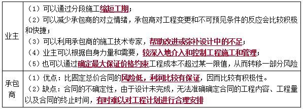承包商不承擔任何價格變化或工程量變化的風險,這些風險主要由業(yè)主承擔,對業(yè)主投資不利。