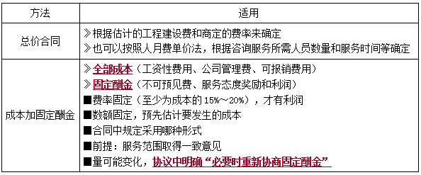 工程咨詢合同計價方式