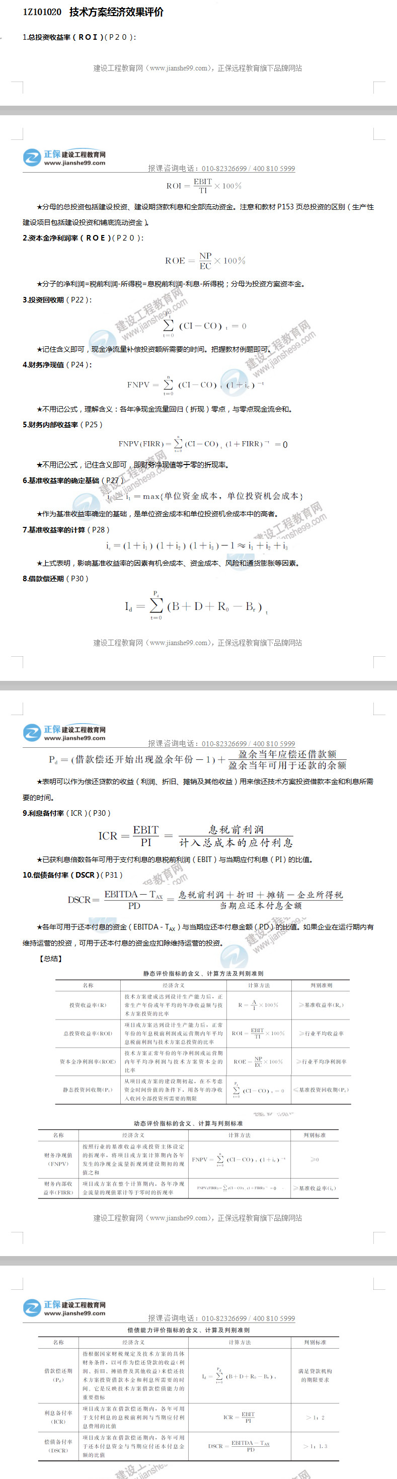 2019一級建造師工程經(jīng)濟公式匯總 :技術(shù)方案經(jīng)濟效果評價