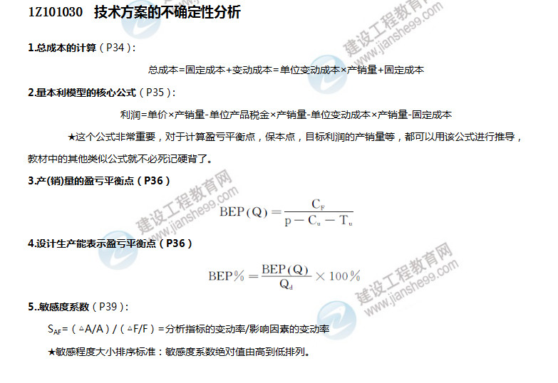 2019一級建造師工程經(jīng)濟(jì)公式匯總 :技術(shù)方案的不確定性分析