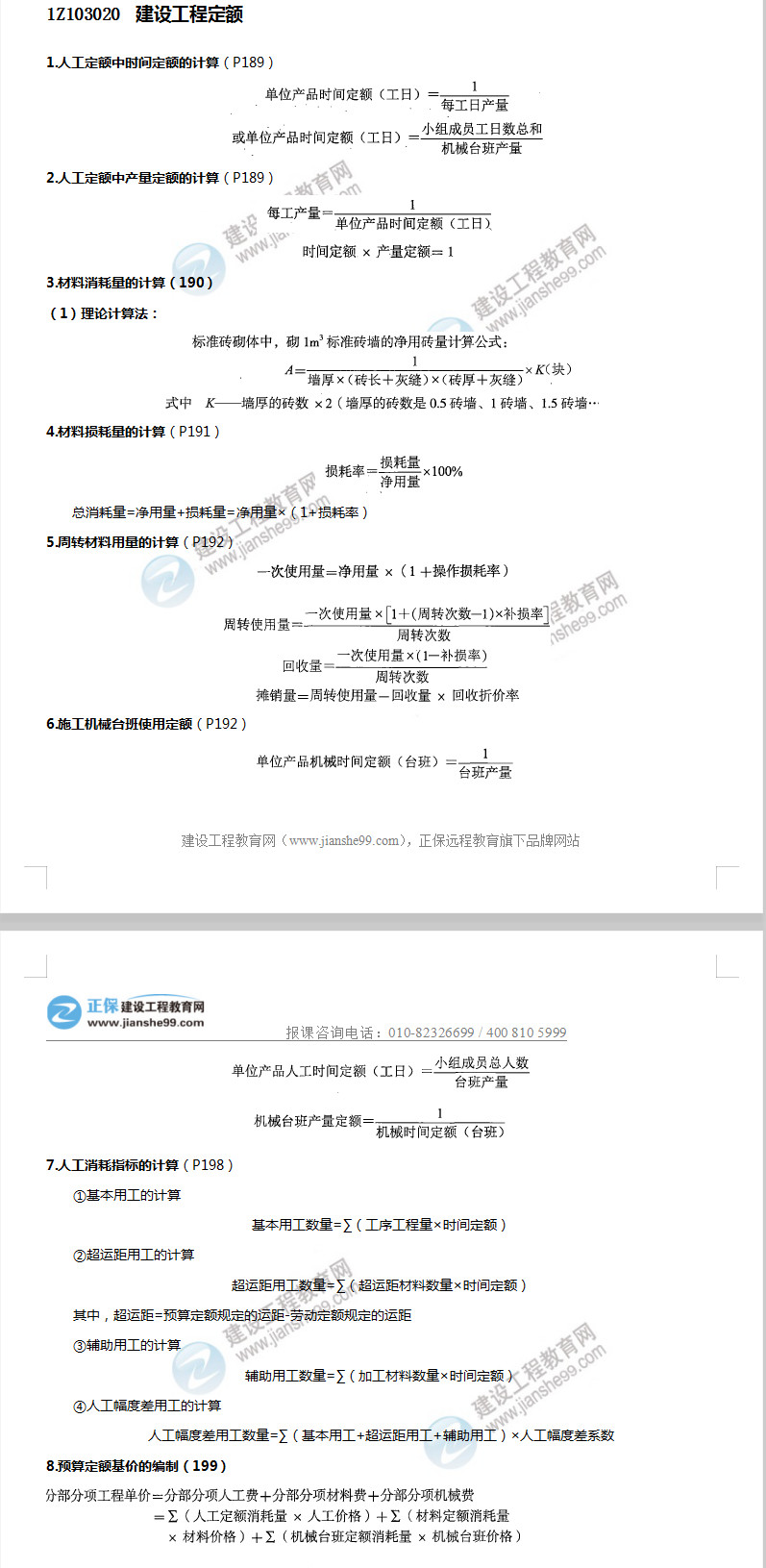 2019一級(jí)建造師工程經(jīng)濟(jì)公式匯總 : 建設(shè)工程定額
