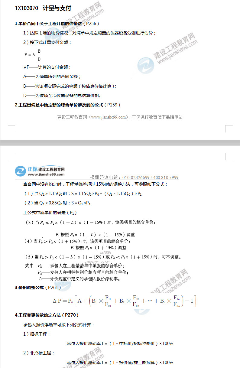 2019一級建造師工程經(jīng)濟(jì)公式匯總 : 計量與支付
