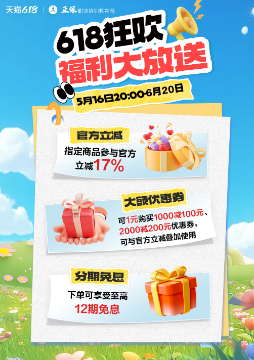 職業(yè)培訓(xùn)教育網(wǎng)天貓618活動(dòng)開啟,官方立減、大額優(yōu)惠券……驚喜不斷,快來一起看看!
