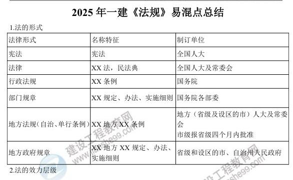 2025年一建《法規(guī)》易混點(diǎn)總結(jié):