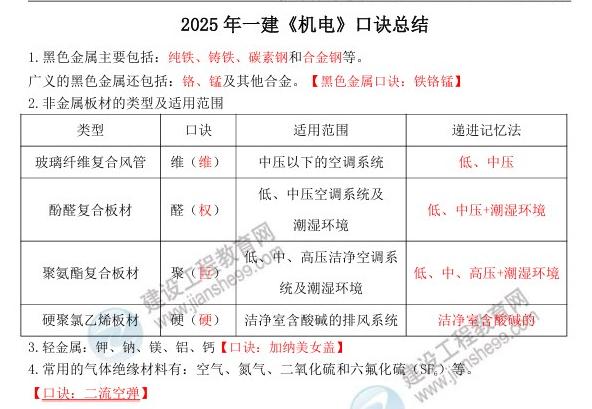 25年一級(jí)建造師《機(jī)電工程》數(shù)字、知識(shí)點(diǎn)總結(jié)