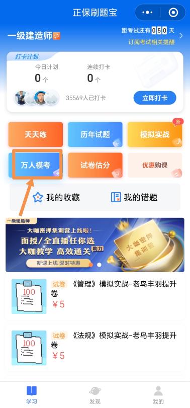 方式二:微信搜索【正保刷題寶小程序】點擊一級建造師【萬人??肌?/p>