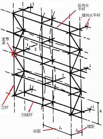 “橫向水平桿”和“縱向水平桿”,橫向水平桿在下。