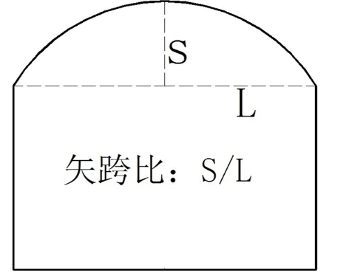 凈矢高:拱式橋從拱頂截面下緣至相鄰兩拱腳截面下緣最低點之連線的垂直距離。(也就是矢跨比圖中所示的S)