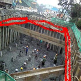 您好,圖中標(biāo)紅的部分就是鋼圍檁。