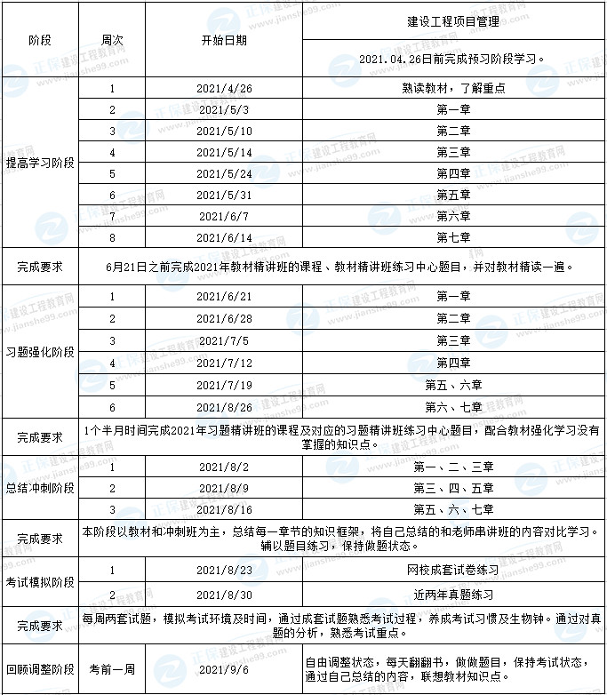 2021一級(jí)建造師項(xiàng)目管理基礎(chǔ)階段學(xué)習(xí)計(jì)劃表