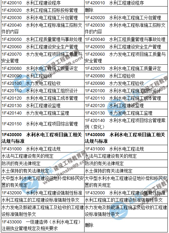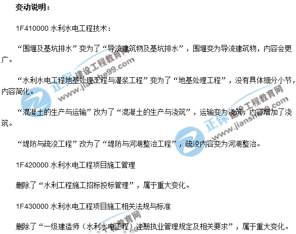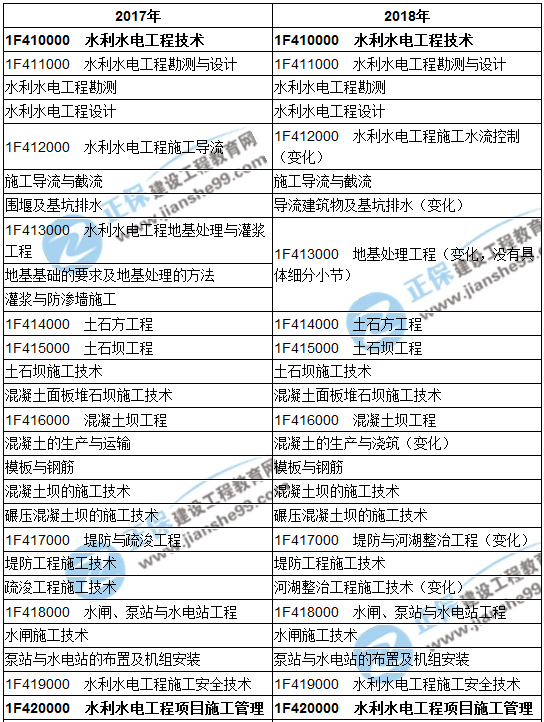 2018一級建造師《水利水電工程管理與實務》教材變動情況——目錄