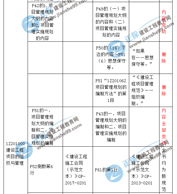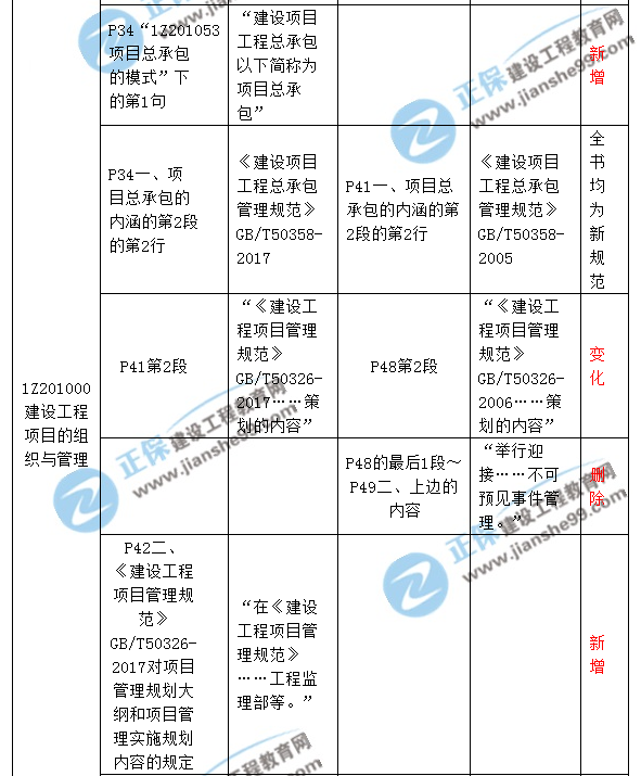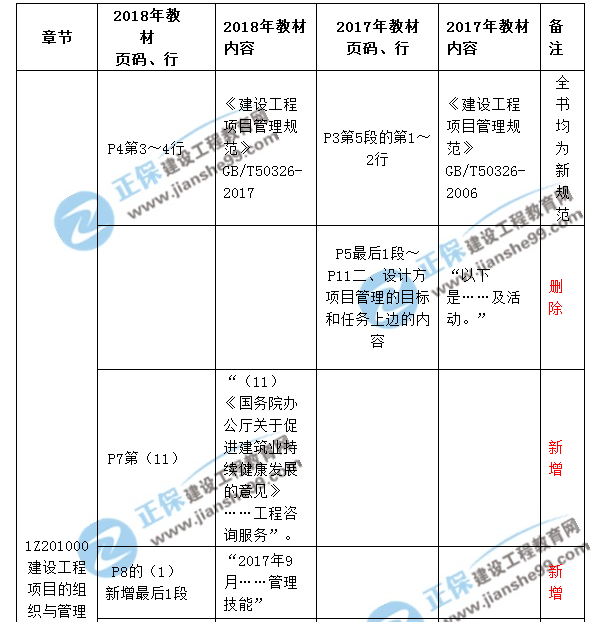 2018一級建造師《建設(shè)工程項目管理》新舊教材對比解析匯總