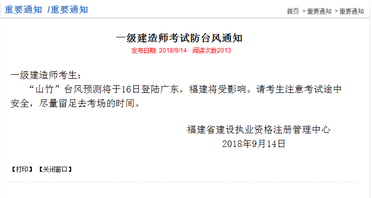 一級建造師考試防臺風(fēng)通知