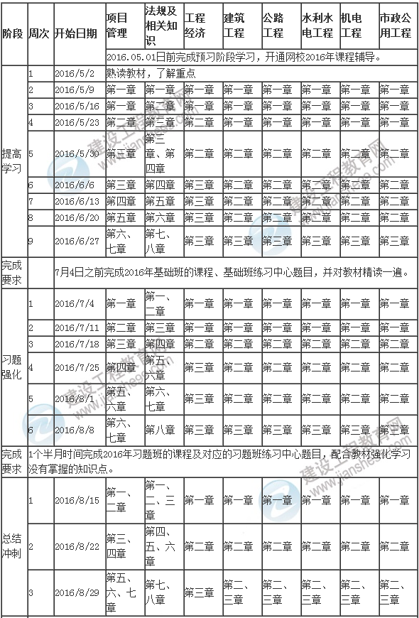 2016年一級建造師執(zhí)業(yè)資格考試備考階段學(xué)習(xí)計劃