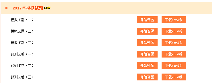 點(diǎn)擊題庫之后,找到“2017年模擬試題”,就可以找到6套試題了,可在線做題也可下載word進(jìn)行練習(xí)。
