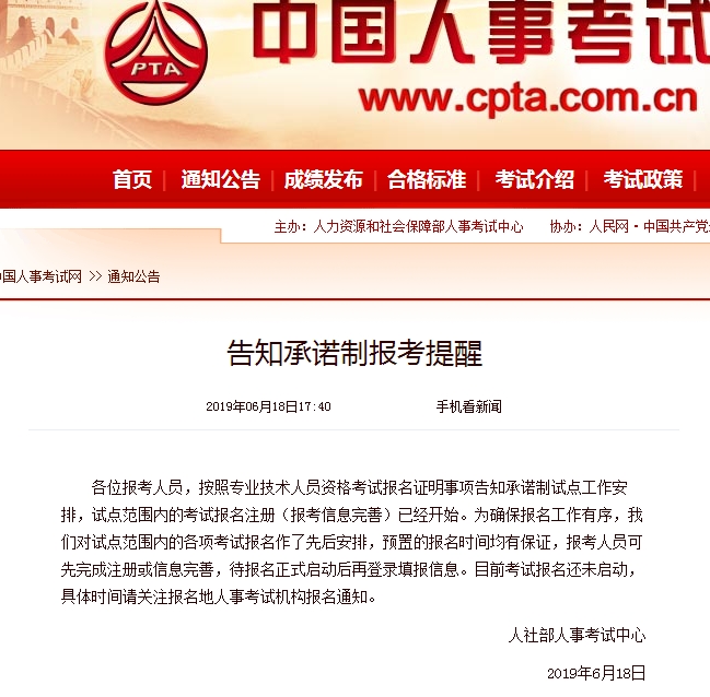 中國人事考試網(wǎng)發(fā)布《告知承諾制報考提醒》,通知中明確提到:試點范圍內(nèi)的考試報名注冊已經(jīng)開始,大家可以到中國人事考試網(wǎng)注冊了!