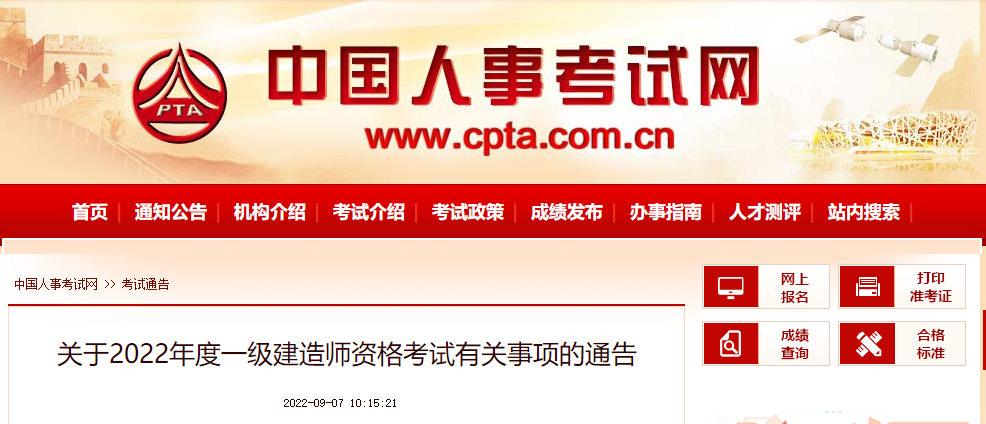 中國人事考試網(wǎng)發(fā)布關(guān)于2022年度一級(jí)建造師資格考試有關(guān)事項(xiàng)的通告