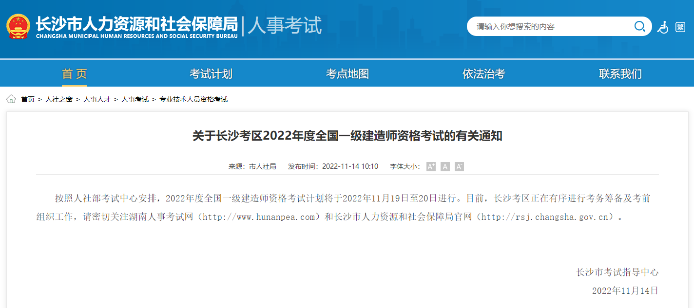 【有序進(jìn)行】關(guān)于長沙考區(qū)2022年度全國一級(jí)建造師資格考試的有關(guān)通知