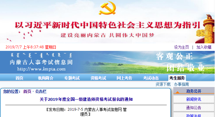 2019年一級建造師報名陸續(xù)開始,近日內(nèi)蒙古人事考試信息網(wǎng)發(fā)布了《關(guān)于2019年度全國一級建造師資格考試報名的通知》,通知明確2019年內(nèi)蒙古一級建造師報名具體時間為2019年7月6日-7月22日。那內(nèi)蒙古2019年一級建造師考試時間在什么時候呢?