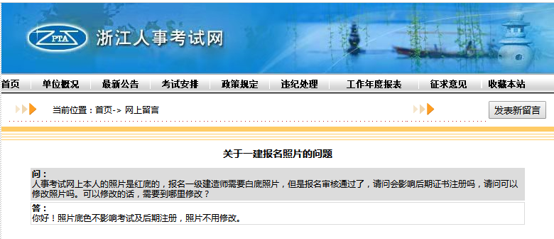 浙江人事考試網(wǎng)關(guān)于一級(jí)建造師報(bào)名照片問題的解答