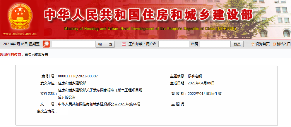 住房和城鄉(xiāng)建設(shè)部關(guān)于發(fā)布國家標(biāo)準(zhǔn)《燃?xì)夤こ添?xiàng)目規(guī)范》的公告>>