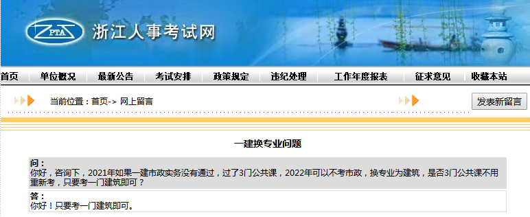 浙江人事考試網解答了考生問到的關于一級建造師換專業(yè)的相關問題,具體如下: