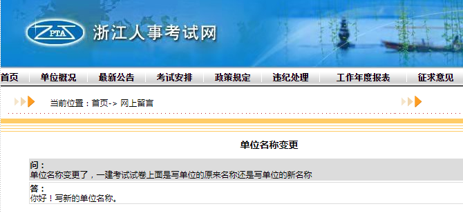 浙江人事考試網(wǎng)關(guān)于一級(jí)建造師單位名稱(chēng)變更問(wèn)題的回復(fù)