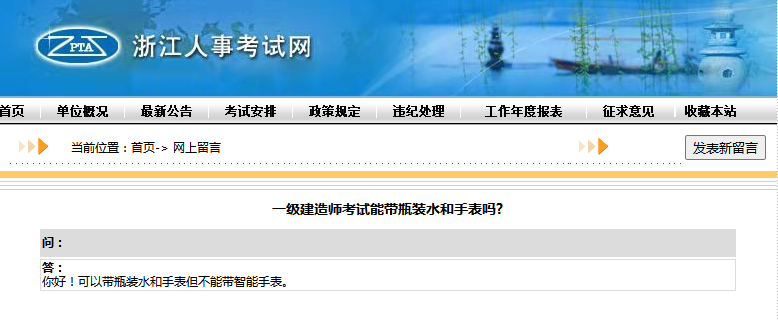 浙江人事考試網(wǎng)關(guān)于2021年一級建造師考試可攜帶物品的回復(fù)