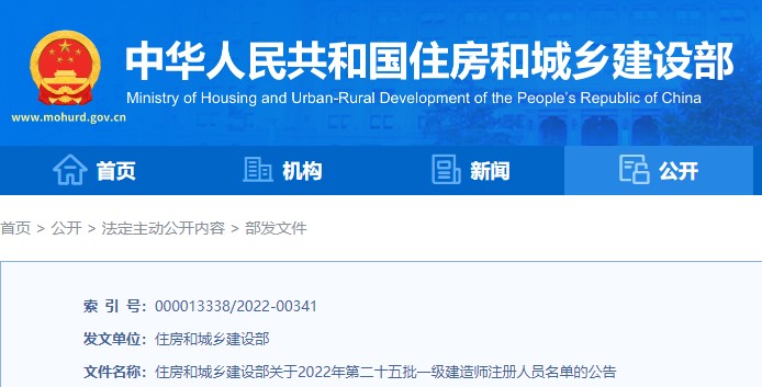 住建部關于2022年第二十五批一級建造師注冊人員名單的公告