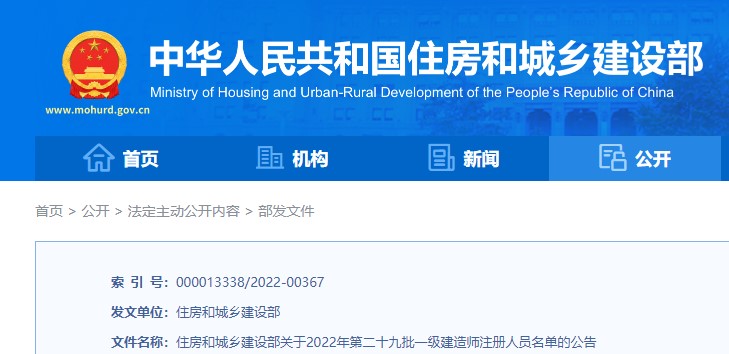 住建部關(guān)于2022年第二十九批 一級(jí)建造師注冊(cè)人員名單的公告