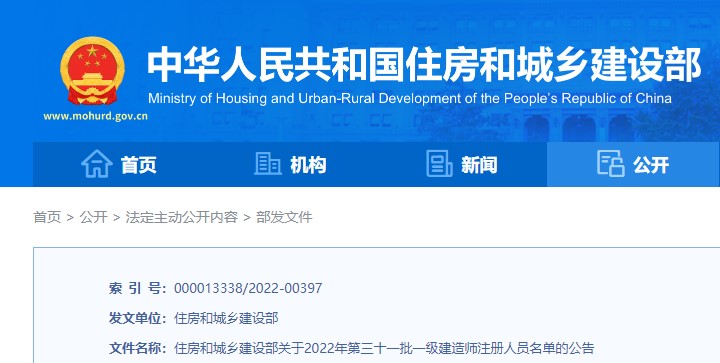 住建部關于2022年第三十一批 一級建造師注冊人員名單的公告