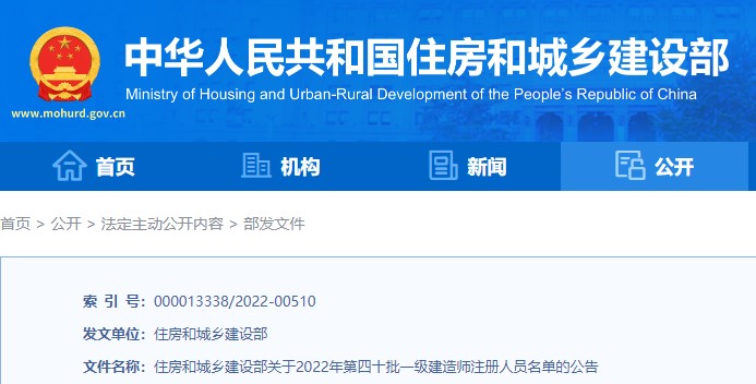 住房和城鄉(xiāng)建設(shè)部關(guān)于2022年第四十批一級(jí)建造師注冊(cè)人員名單的公告