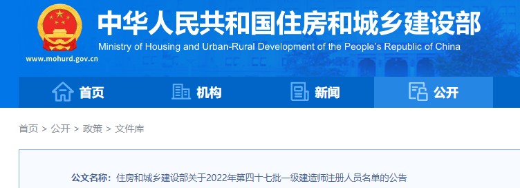 住建部關(guān)于2022年第四十七批 一級建造師注冊人員名單的公告